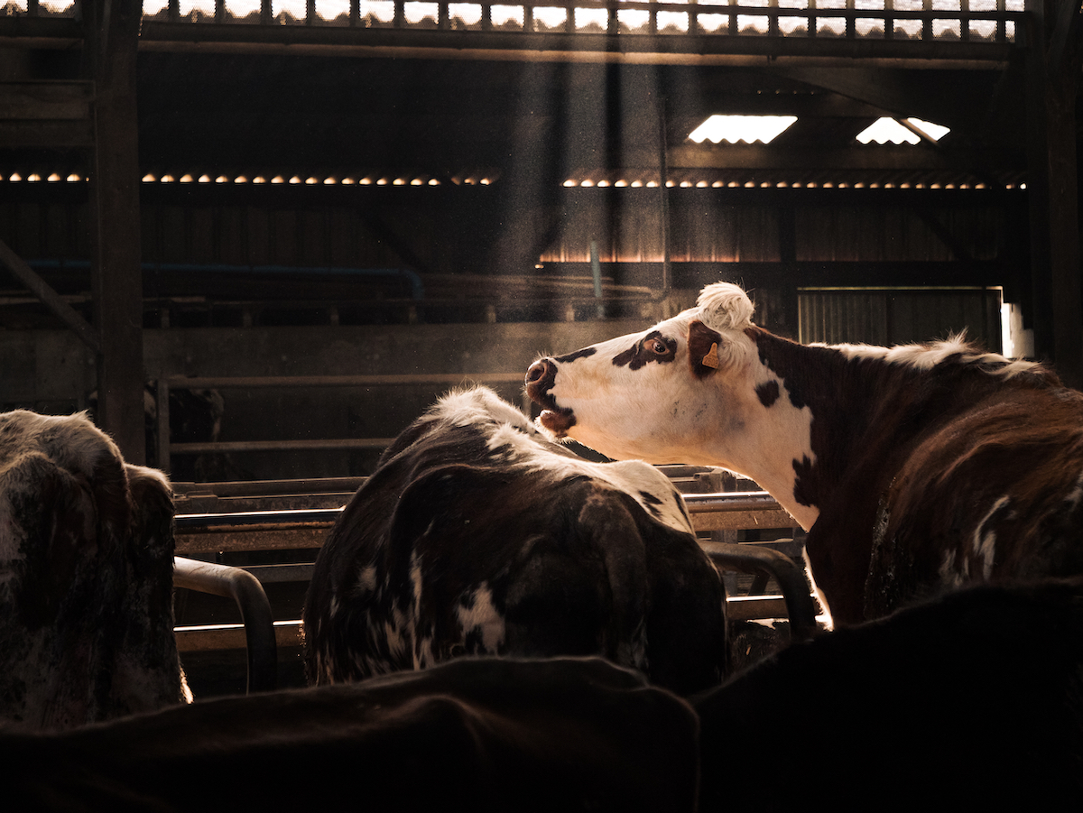 La traite se prépare, et cette vache ne semble pas réjouie par la chose. Ou peut-être appelle-t-elle ses camarades retardataires ?