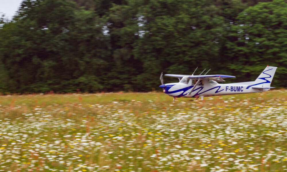 L’heure tourne, il est temps de revenir à terre. Phase d’approche autour de l’aérodrome. Je laisse les commandes sur l’avant-dernier virage. Dans l’axe de la piste, on perd rapidement en altitude et vitesse. Sensation de s’enfoncer dans un sol qui se déroberait, puis les roues entrent en contact avec le goudron. Nous sommes posés.
